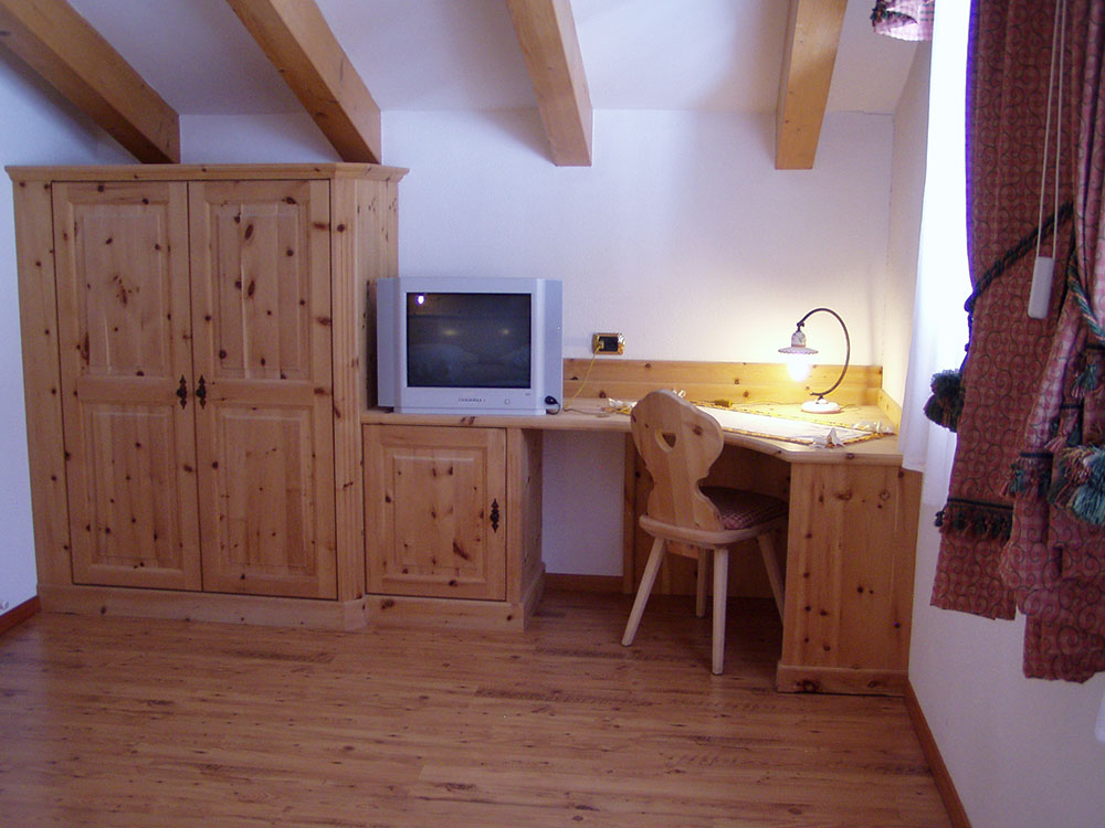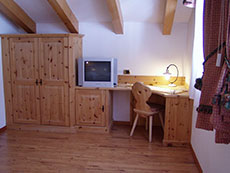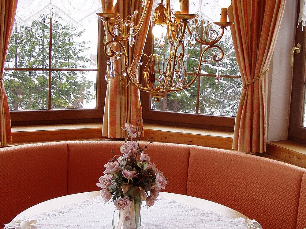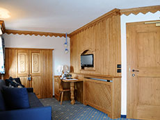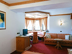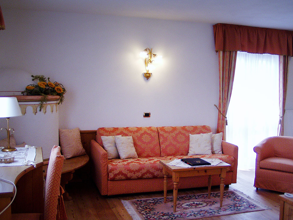 Junior suite: tutte con balcone offrono al cliente una splendida vista sul paesaggio circostante soprattutto quelle situate nel caratteristico bovindo tirolese. Sono a seconda della tipologia costituite da uno o due ambienti distinti, ciascuno con i propri servizi, alcune con vasca-doccia idromassaggio, alcune situate su due livelli.